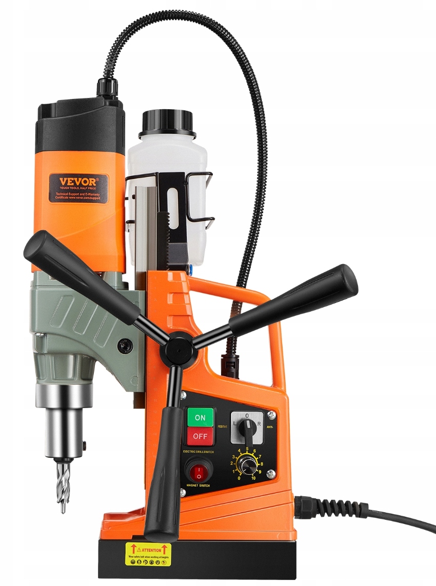 Магнітний дриль оснащений двигуном потужністю 1450 Вт, що дозволяє йому впевнено працювати навіть під час свердління великих отворів у твердій сталі.