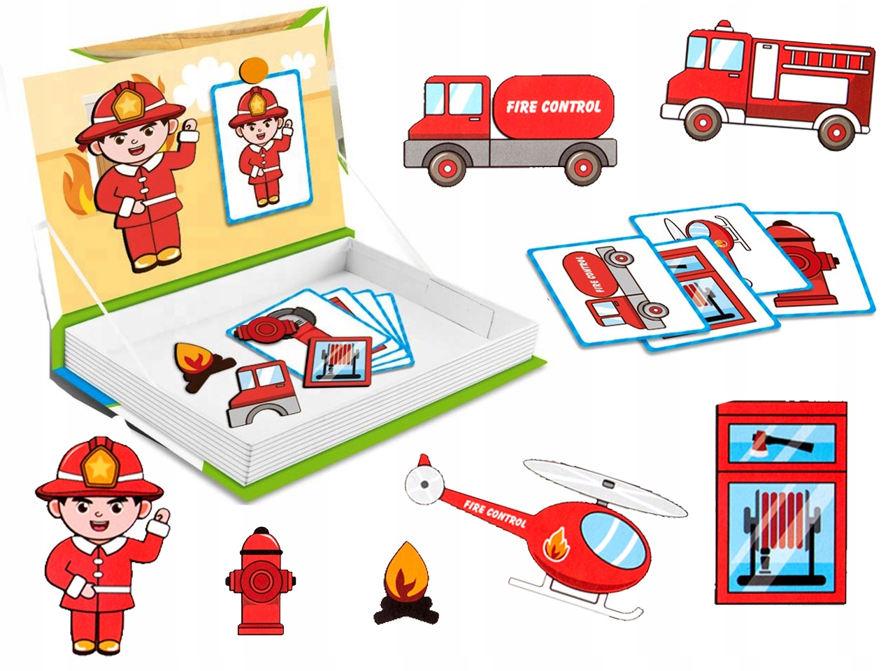 Магнітний пазл — чудова розвага, яка вчить зосередженості та логічного мислення. Кольорові елементи неодмінно привернуть увагу багатьох дітей і спонукатимуть їх оформити їх. Цей набір містить 31 магнітний елемент і 8 карток, пов’язаних з пожежною командою.