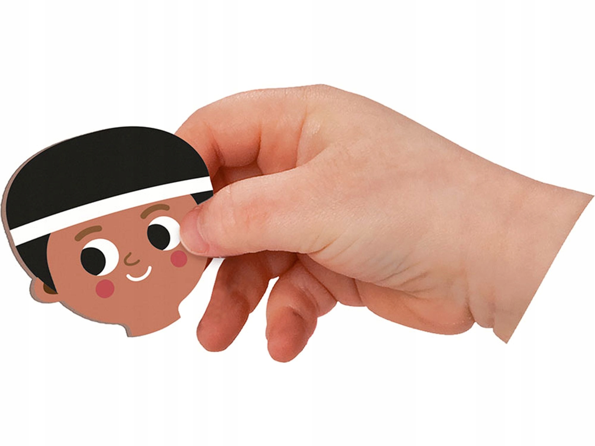 Красива коробка-розкладачка у вигляді книжки має магнітну стінку, на якій наш малюк може створювати картинки, пов'язані зі спортсменами. Існують окремі частини тіла гравців і атрибути спортсменів, наприклад арбалет або каяк. Дитина може побудувати представників таких дисциплін, як: футболіст, тенісист, баскетболіст, гольфіст і навіть фехтувальник, сидячи в інвалідному візку.