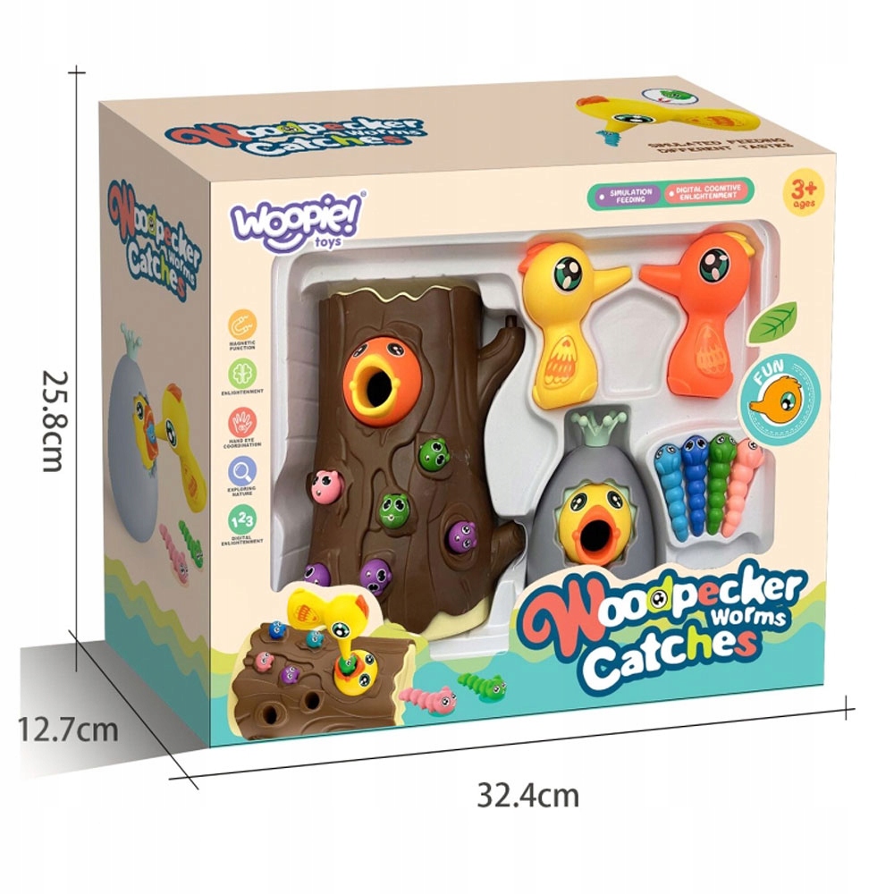 - Гра полягає в тому, щоб дятлом за допомогою магніту ловити черв’яків, захованих у дуплах дерева, а потім повертати їх у дзьоб птаха. .