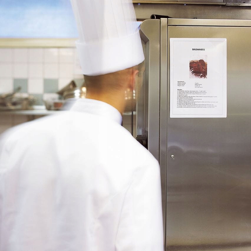 Магнітна кишеня для документів із серії Kang Easy Load, розмір A3, біла, відкривається по діагоналі та легко закривається в кутку. Тильна сторона кишені повністю магнітна, що дозволяє використовувати її на всіх гладких, плоских металевих поверхнях без використання клею, шурупів чи цвяхів. Швидкий монтаж і демонтаж, не залишає слідів. Виготовлений з міцного, екологічно чистого ПВХ 120 мк. Можна використовувати як вертикально, так і горизонтально.