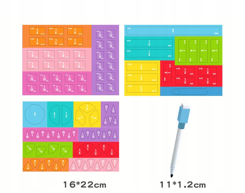 Ця унікальна математична книга - це ідеальний спосіб використання дробів для дітей та дорослих. Книга, що складається зі сторінок, кожна з яких виготовлена з магнітного матеріалу. Кожна сторінка містить барвисті зображення та символи, які дуже важливі для вивчення математики.