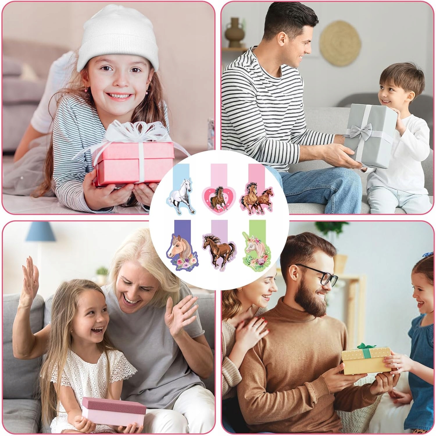 6 унікальних візерунків конячок - кожен візерунок у наборі з 2 штук, загалом 12 закладок.