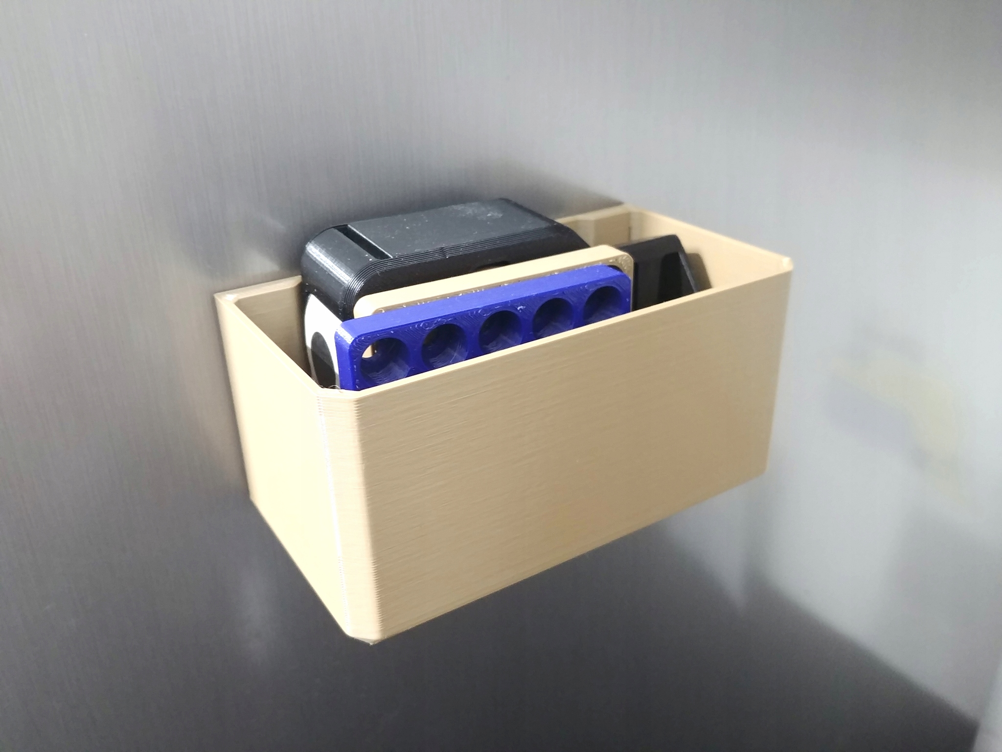Контейнер для приладдя та посуду для броньованих шаф тощо завдяки використанню дуже сильні неодимові магніти можна прикріпити до будь-якої металевої (феромагнітної) поверхні, від магнітної дошки для сухого стирання чи крейди до металевих шаф для інструментів.