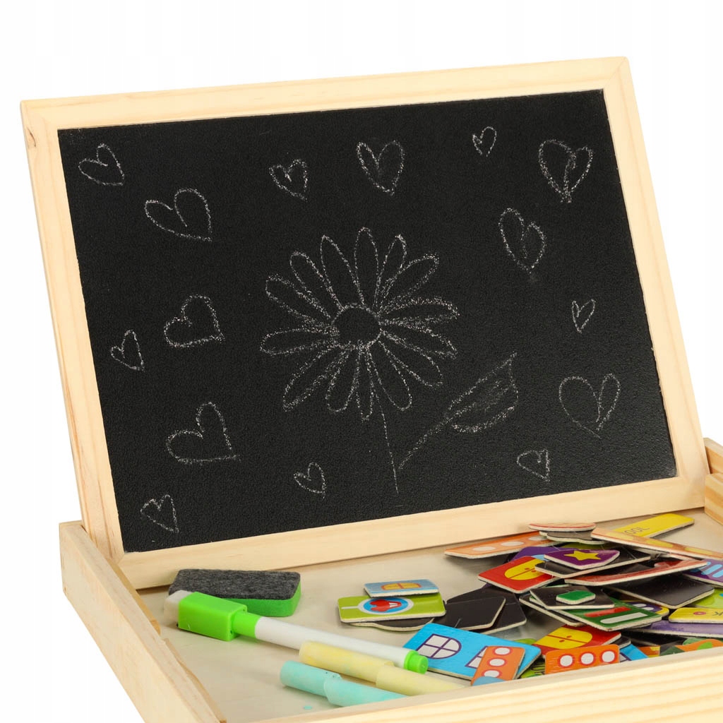 - Білий магнітна сторона використовується для складання барвистих пазлів і письма маркером
