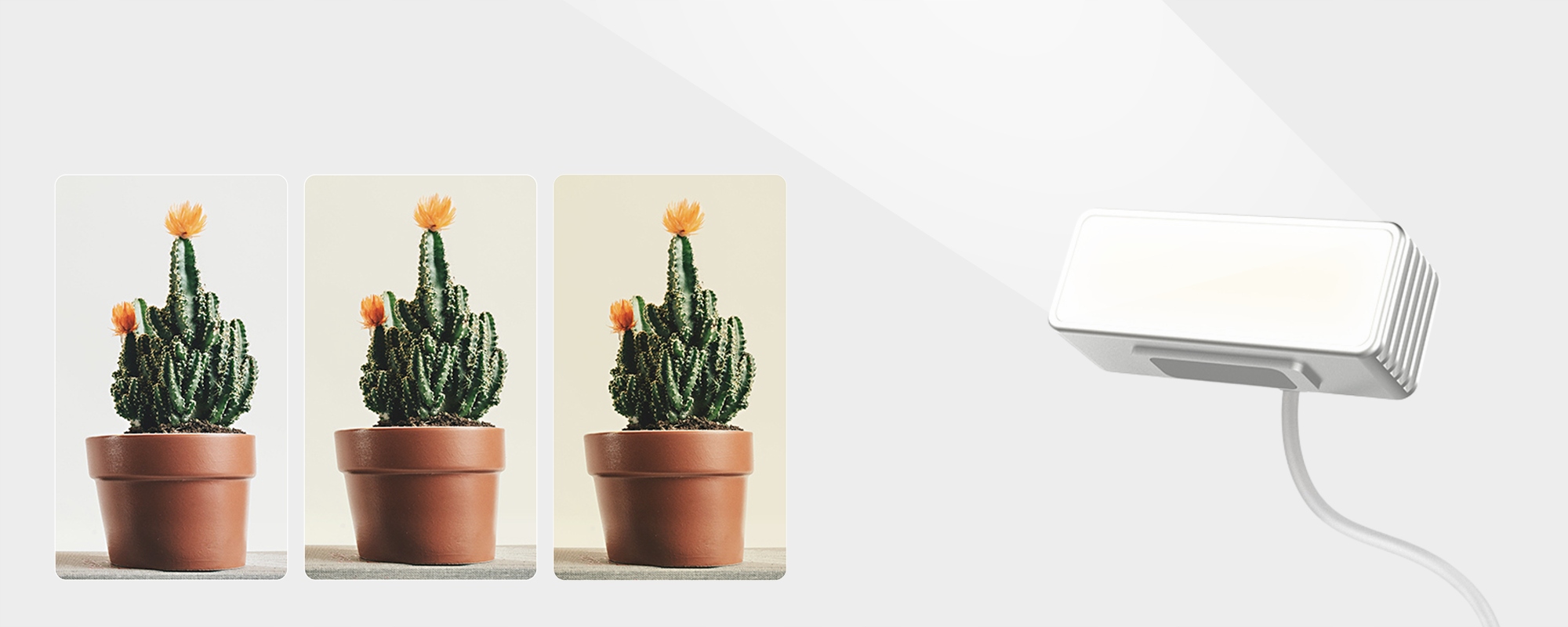 Другий повзунок, який ви знайдете на корпусі лампи, відповідає за регулювання кольорової температури світла в діапазоні від 3300 до 5200 К. Завдяки цьому ви точно адаптуєте параметри роботи пристрою до існуючих умов. Чи дбаєте ви про теплий портрет в осінній атмосфері? А може, ваші фільми про Make -up потребують використання більш прохолодного або нейтрального світла? Один рух пальців достатньо, щоб встановити відповідну кольорову температуру.