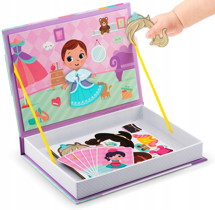 - упаковка містить магнітний фон для приклеювання елементів одягу дівчат, також функціонує як відділення для зберігання.