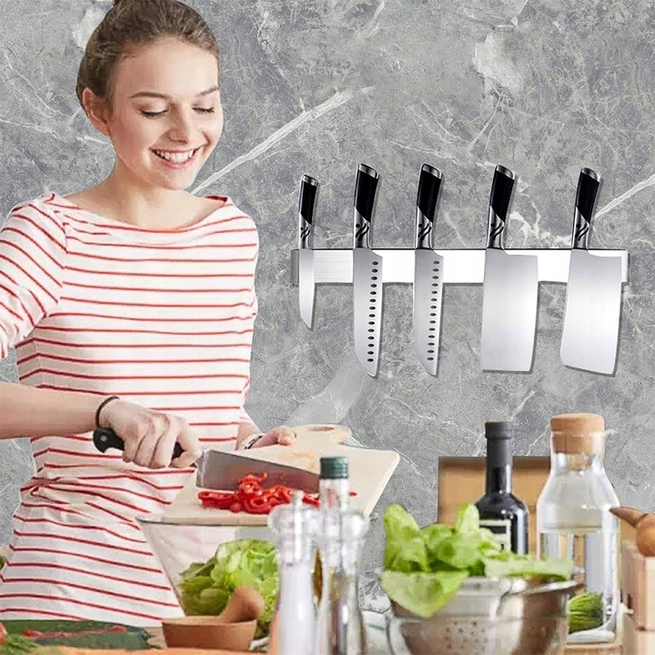 - Універсальний магнітний тримач для інструментів: цей магнітний тримач для ножів підійде не лише на кухні, але й в офісі, гаражі, підвалі чи майстерні, забезпечуючи порядок і зручне зберігання інструментів.