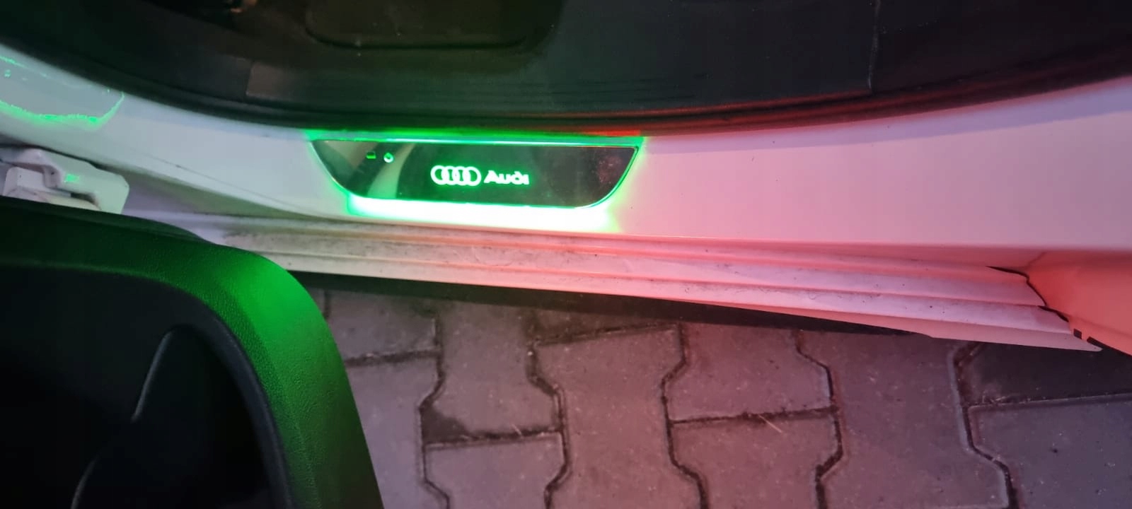 Порогові накладки з логотипом Audi, світлодіод, освітлений вбудованим акумулятором.