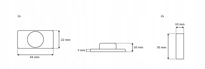 - Розміри (ширина x висота x глибина): 44x22x10mm