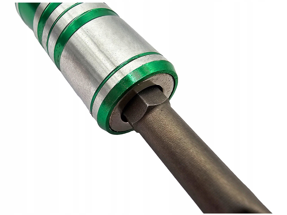 Біт -тримач має магнітне кріплення разом із направляючим рукавом , що дозволяє забезпечити безпечну та суцільну кріплену в ручці.