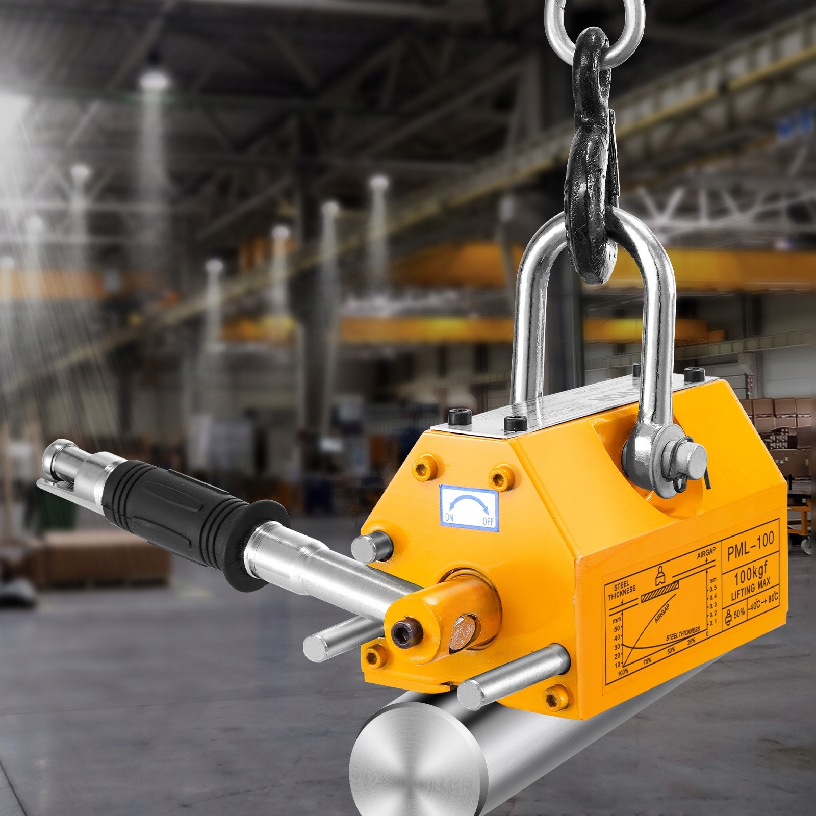 Маючи потужність 100 кг та 2,5 коефіцієнт безпеки, цей підйомник ефективно підтримує вуглецеву сталь, лепаску, залізо та інші магнітні матеріали. Гарантує безпечне та ефективне підняття важких навантажень.