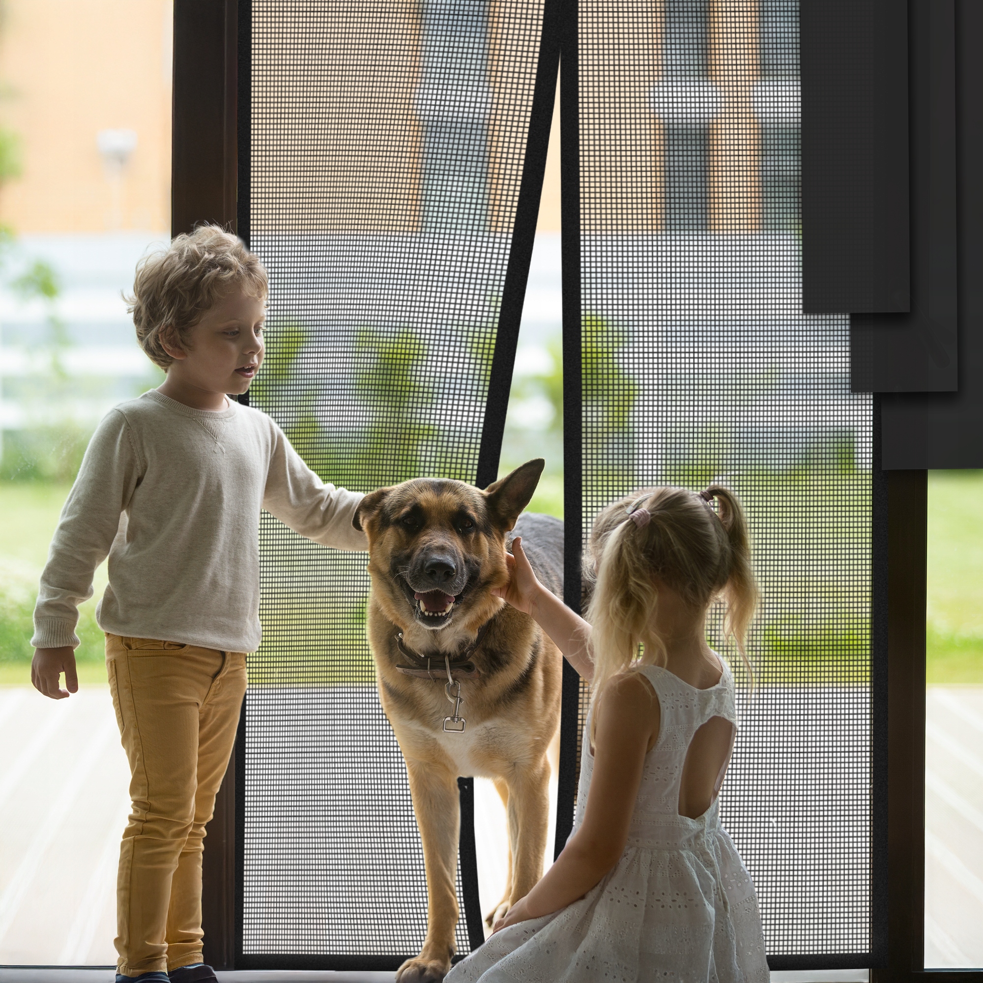 Завдяки магнітному закритті сітка комарів автоматично повертається до свого первісного положення після кожного проходу, що робить його надзвичайно зручним у використанні - також для дітей та домашніх тварин! Тканина , завдяки якому вони не зачепить при відкритті дверей. Завдяки цьому крила рівномірно розташовані, коли магніти закриті , усуваючи всі прогалини на нижньому краю дверей.