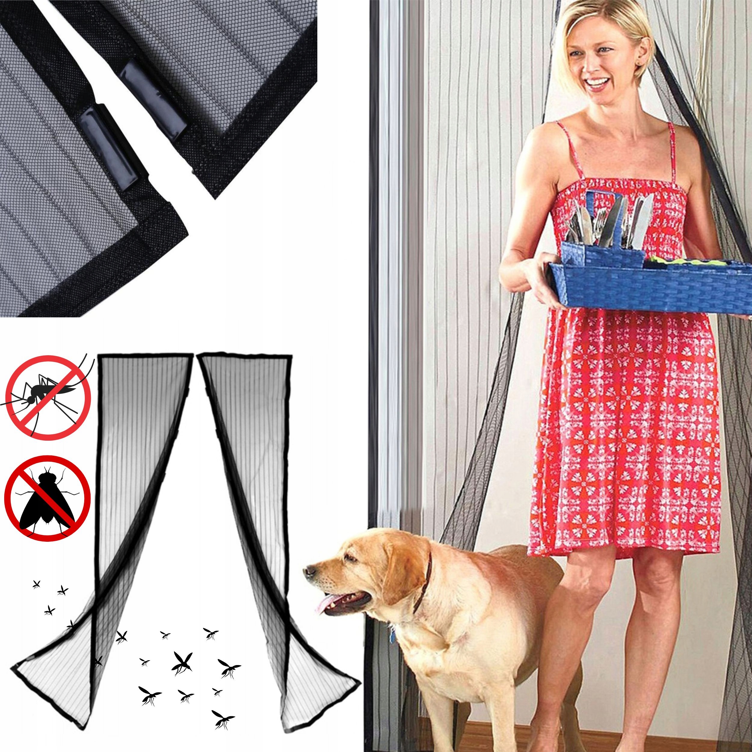 Магнітна магнітна комарна сітка - два ремені. Завіса складається з двох чорних сітчастих ременів з магнітними ременами, встановленими в краях ( 8 кубів магнітних і 7 штук магнітних смужок )- виходячи через завісу, що ми ковзаємо ремінці, які потім після проходу "автоматично" ковзає позаду нас, обстежуючи кімнату. Підходить до дверей до максимуму 100 см x 240 см .