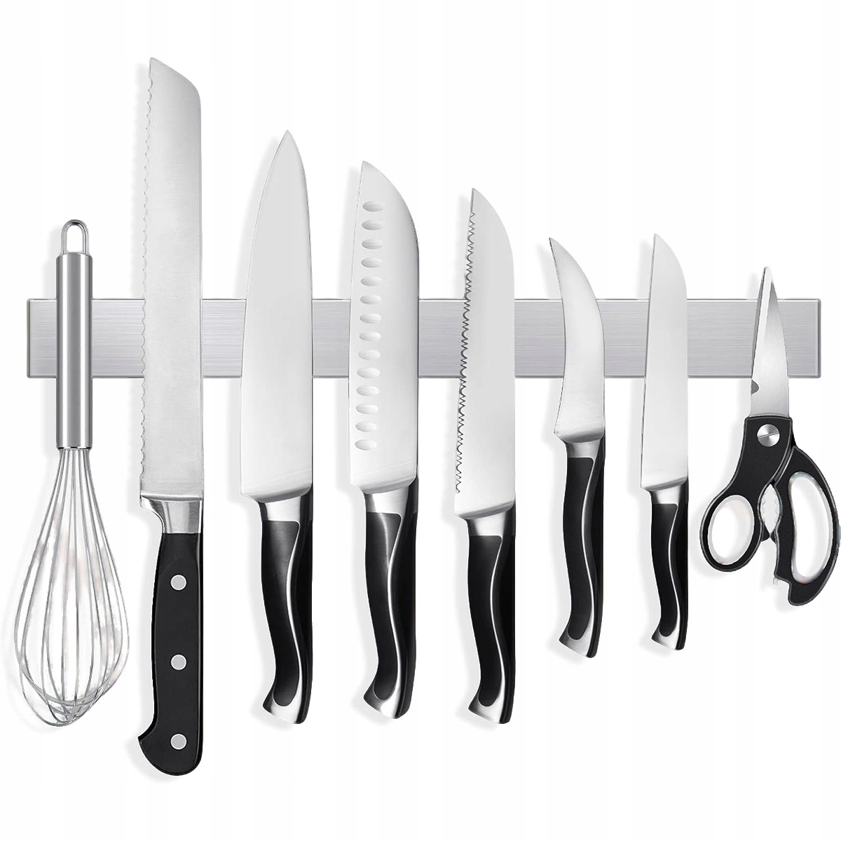 Магнітний тримач для ножів оснащений дуже сильним магнітом, завдяки якому ножі тримаються разом і не випадають випадково. Підходить для всіх типів кухонних ножів, ножиць, викруток та інших металевих інструментів.