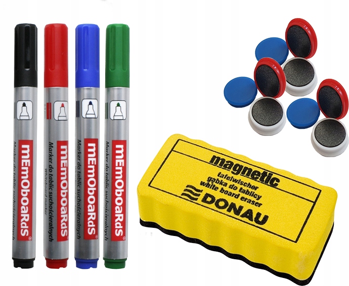 4шт маркери Bemobe, 9шт польські, дуже міцні магніти з покриттям, магнітна губка Donau або Memobe