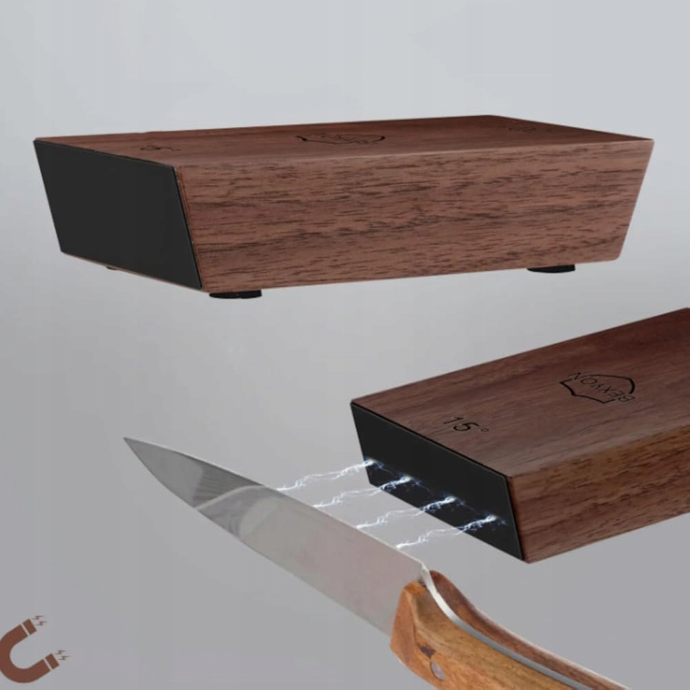 МАГНІТНА ТОЧАЛКА ДЛЯ НОЖІВ З РОЛИКАМИ, 2 КУТИ - ДЕРЕВ'ЯНА