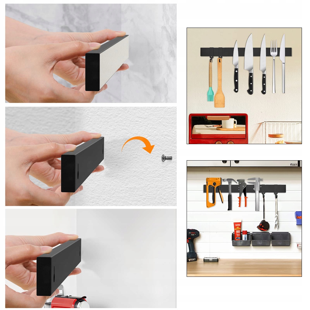 Завдяки надсильній магнітній силі, яка витримує до 3 кг, цей тримач для інструментів надійно зберігає металеве кухонне начиння, викрутки, гайкові ключі, молотки та інші інструменти, забезпечуючи надійне зберігання всіх ваших необхідних речей.