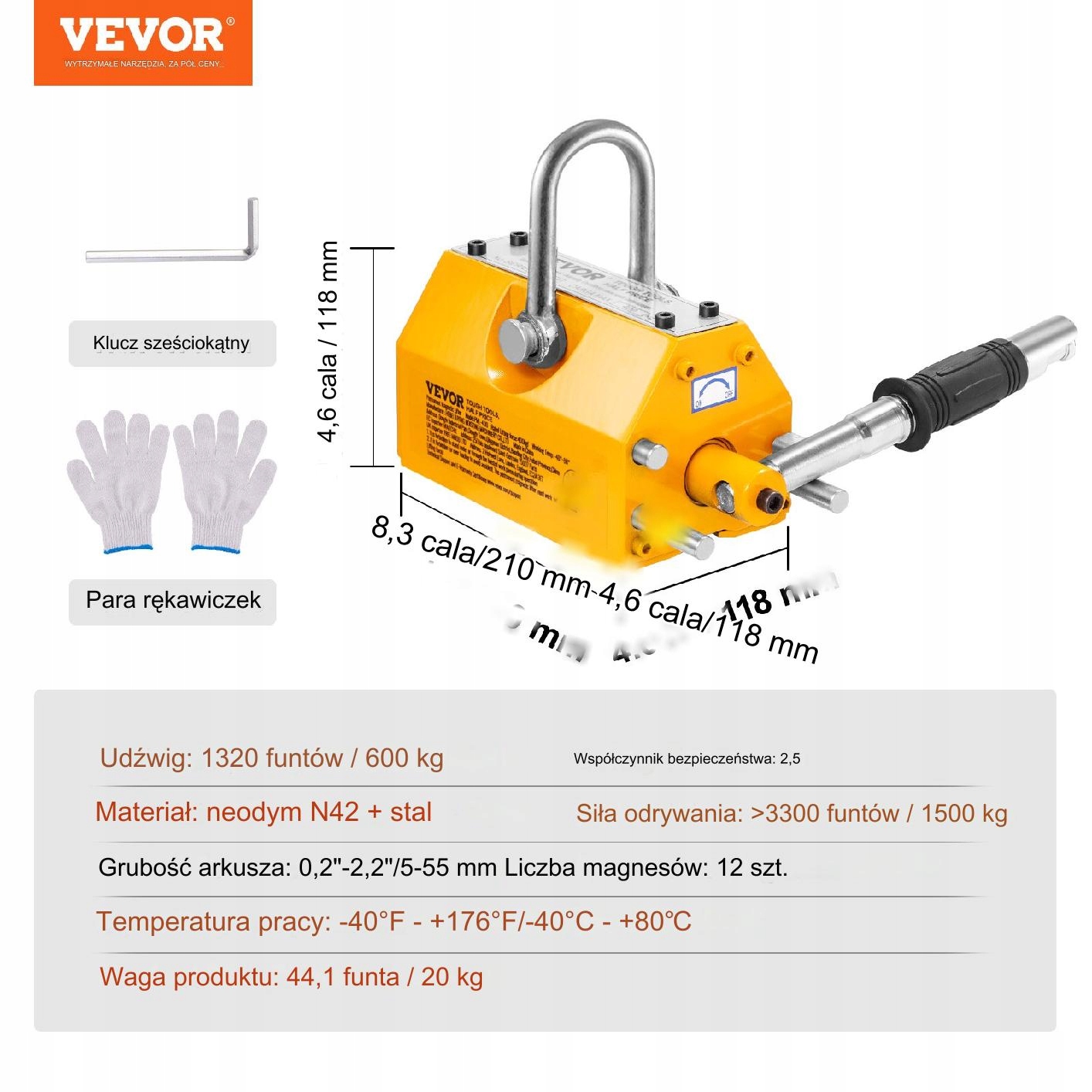 Магнітний підйом з підйому 600 кг - ідеальний інструмент для професіоналів у промисловості, семінарах та будівництві. Оснащений N42 неодимовими магнітами, забезпечує безпечне та ефективне підняття сталевих елементів без необхідності електричної потужності. Пазована канавка U дозволяє керувати плоскими та круглими поверхнями, а ергономічна ручка з механізмом вивільнення полегшує роботу. Революціонуйте свої проекти за допомогою цього довговічного та безпечного пристрою!