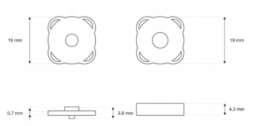 - розміри: прибл. 19 мм x 19 мм