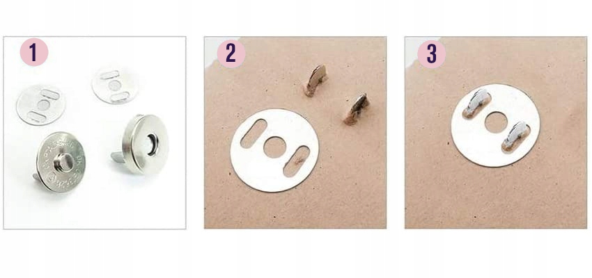 За допомогою плоскогубців, молотка або іншого твердого предмета загніть вусики-ламелі всередину. Міцно пердіть, щоб застібка щільно прилягала до тканини.