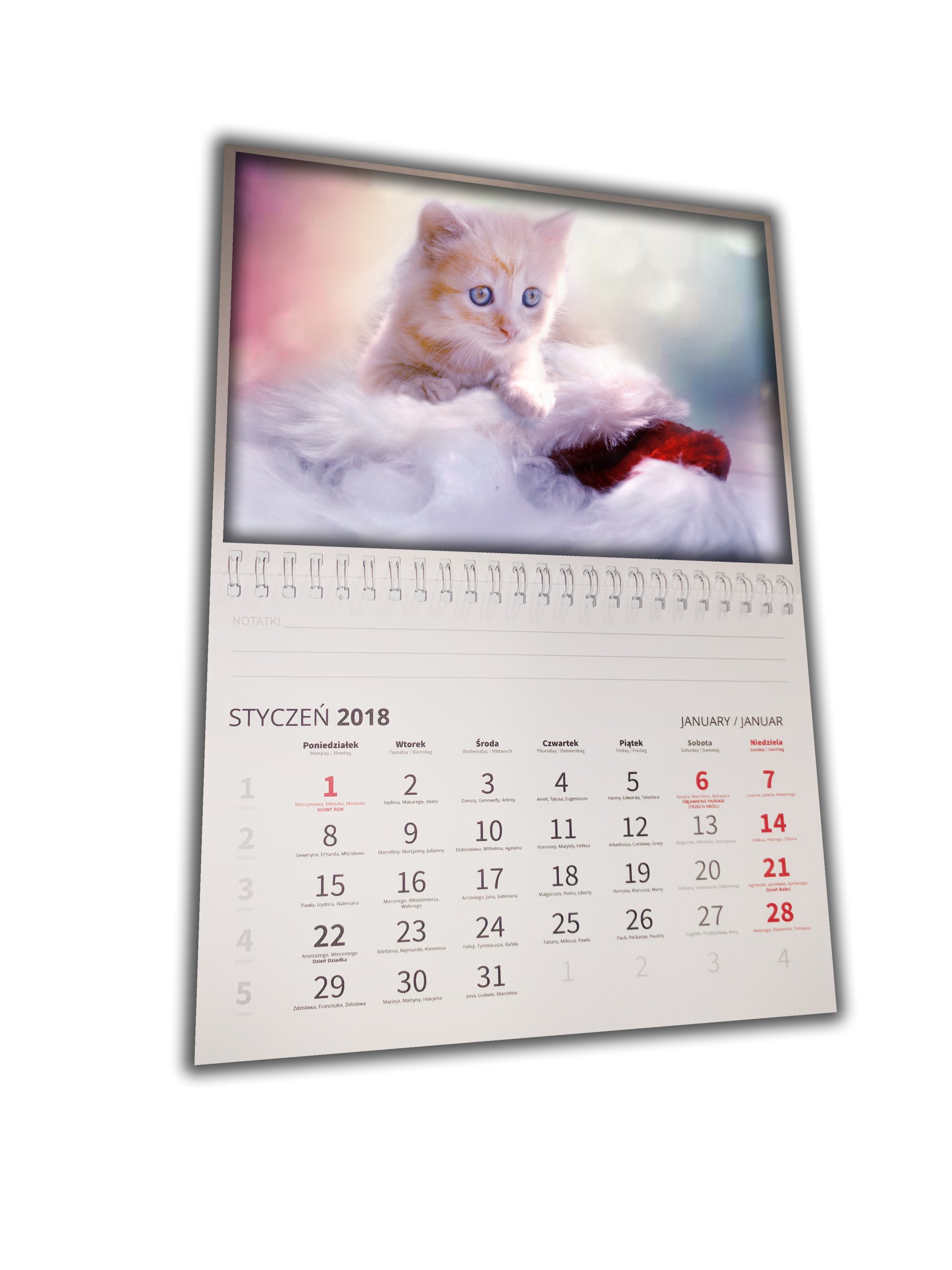 - Матовий папір SATIN 120г/м2 - календар - дозволяє писати та позначати дати на календарі.