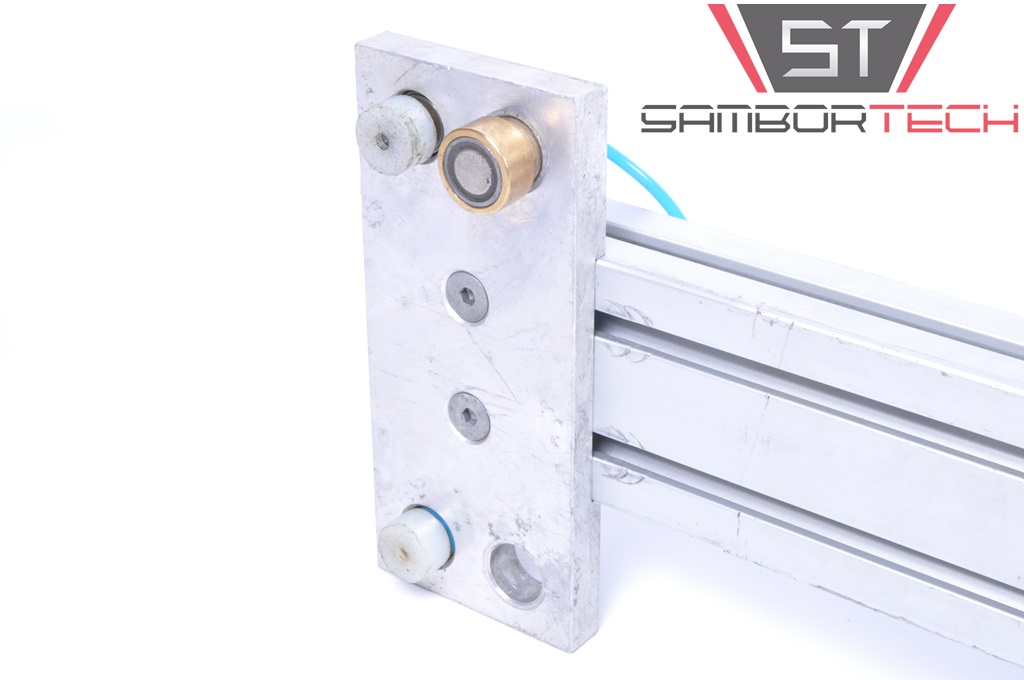 - захват має 5 постійних неодимових магнітів (повинно бути 6, але один відсутній), кожен має односторонній пневматичний привод, який використовується для звільнення захопленого елемента,
