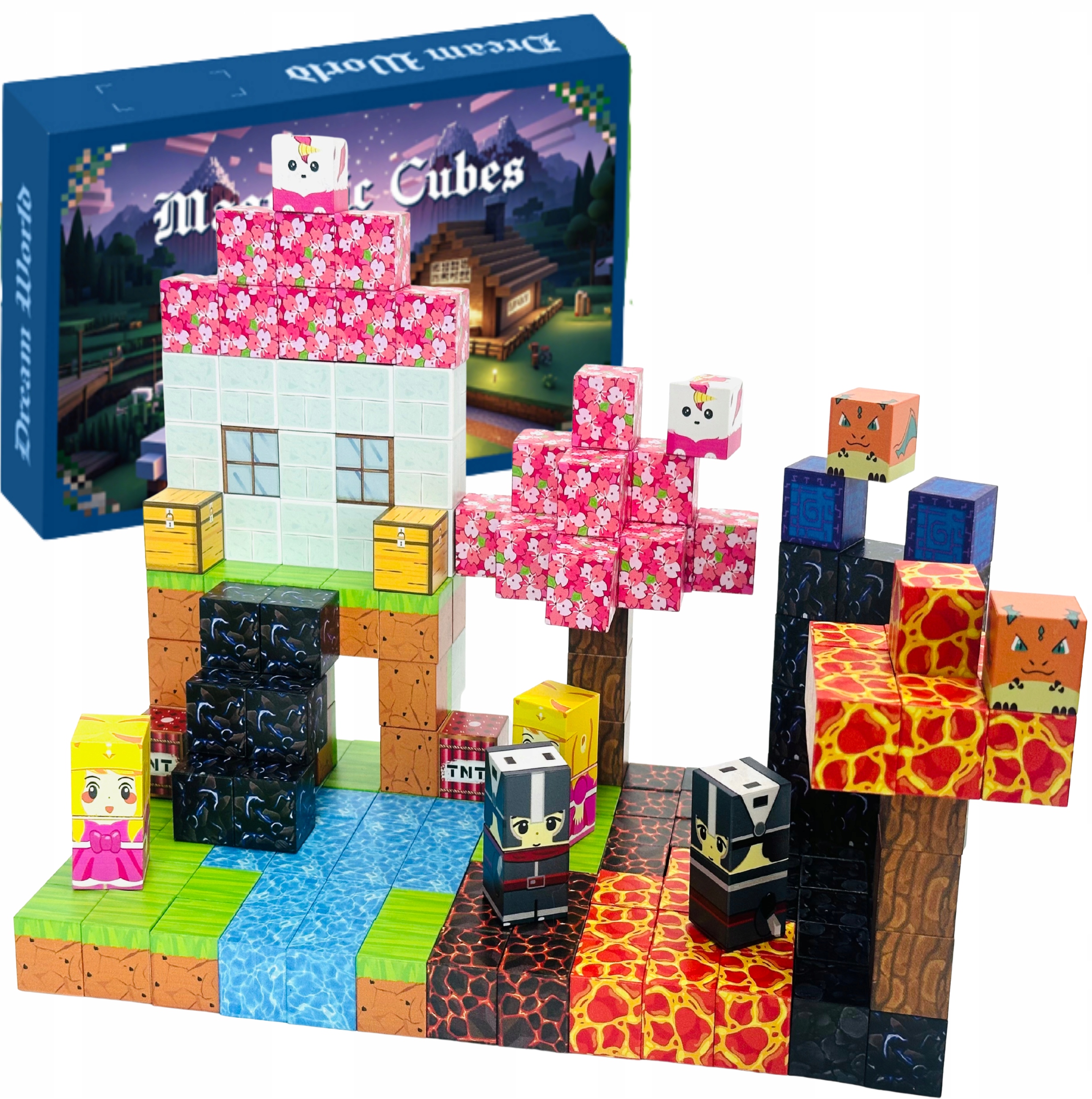 МАГНІТНІ БЛОКИ 200 EL КУБ ДЛЯ ДІТЕЙ + НАБІР ФІГУРОК 8 ПІКСЕЛЕЙ