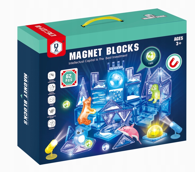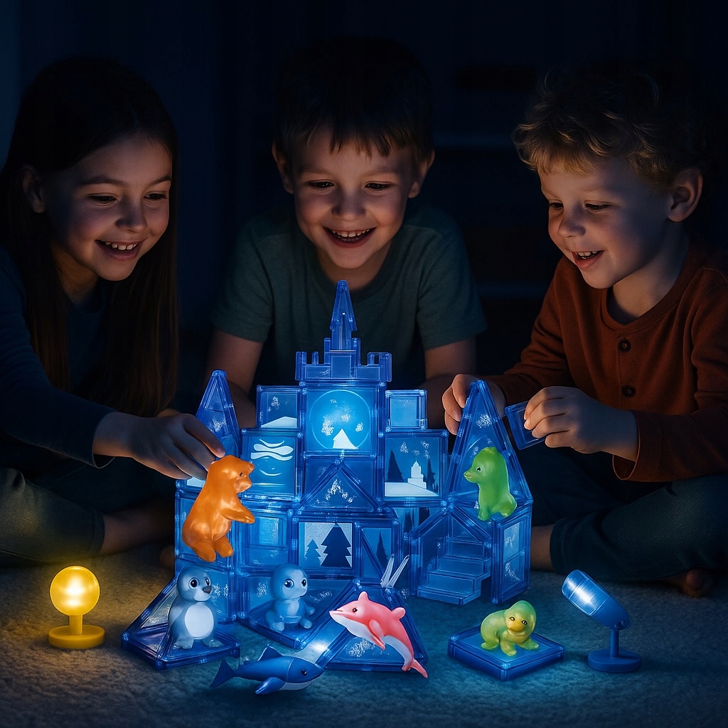 Магнітні кубики – це інноваційна навчальна іграшка, яка поєднує в собі творчість, навчання та нескінченні можливості конструювання. Кожен набір складається з різних форм — квадратів, трикутників, арок, трубок і світлових модулів — виготовлених із міцного напівпрозорого матеріалу яскравих кольорів, що привертають увагу. Потужні, безпечні магніти, вбудовані в стінки, дозволяють дітям легко з'єднувати елементи в стійкі конструкції і при цьому швидко їх роз'єднувати, розвиваючи дрібну моторику і вміння розпізнавати форми.