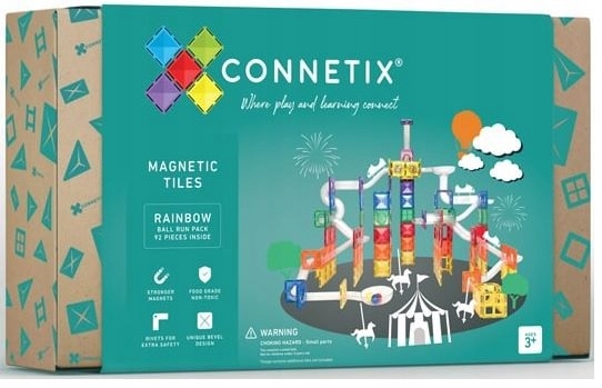 Набір із 92 блоків веселкових відтінків, які дозволяють побудувати дивовижний біг з м’ячем. Connetix Ball Run Pack додає унікальну динаміку та неповторні відчуття до «звичайного» будівництва з магнітними блоками. Дітям буде дуже цікаво спостерігати за рухом кульок і експериментувати з ними. Примітка. Розвага захопить і дорослих :)