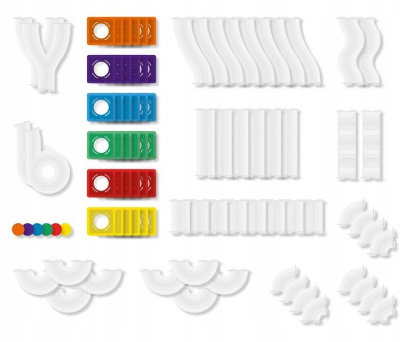 Блоки легко і міцно з’єднуються за допомогою сильних магнітів, вбудованих у їхні рами, а прозорі кулькові доріжки кріпляться до блоків за допомогою спеціальних гачків.