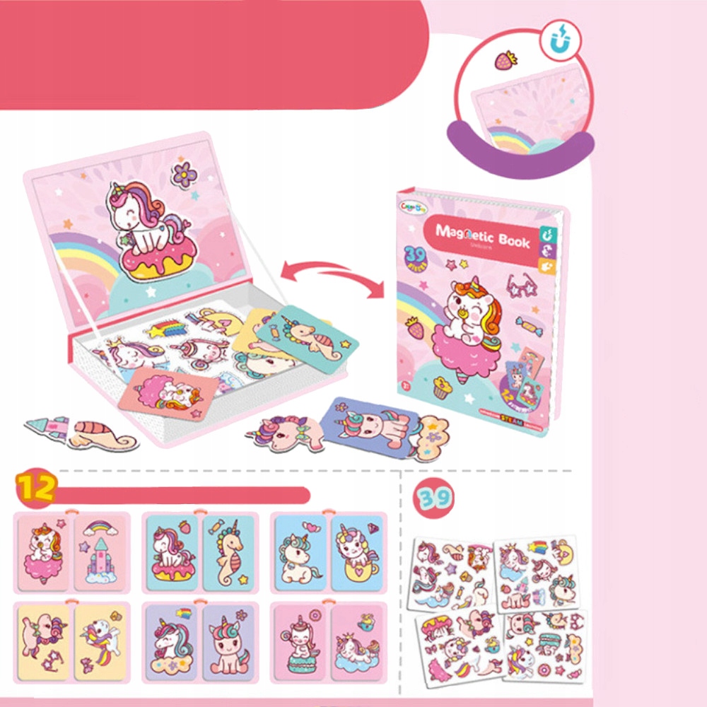 Практичне рішення коробка у формі книжки, що закривається на магніт, полегшує зберігання частин головоломки, але це також фантастичне рішення, щоб зайняти вашу дитину під час подорожі. Ваша дитина буде в захваті від ідеї розмістити розроблені стилі на магнітній дошці або холодильнику.