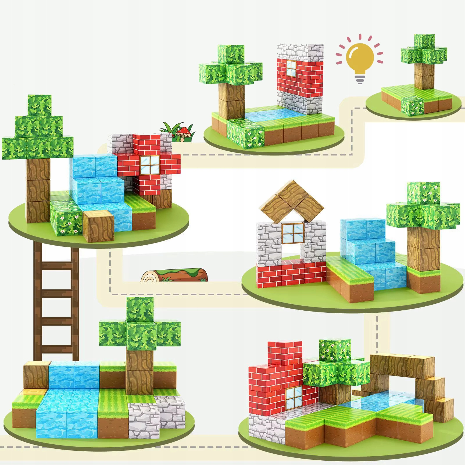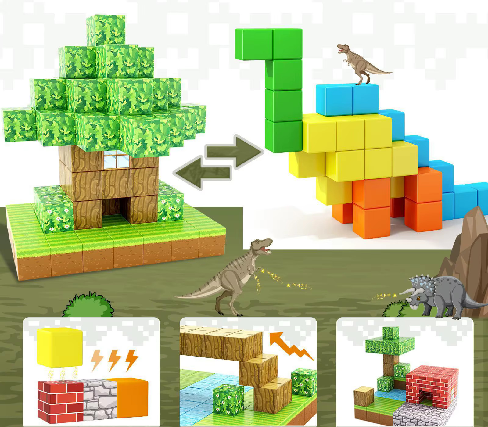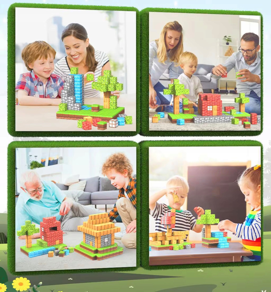 ✅ 100 магнітних блоків – набір різнокольорових блоків у формі кубиків дозволяє повністю зануритися у світ творчої гри. Відтворюйте свої улюблені будівлі, пейзажі та сцени, натхненні популярною грою, розвиваючи свою уяву та будівельні навички.