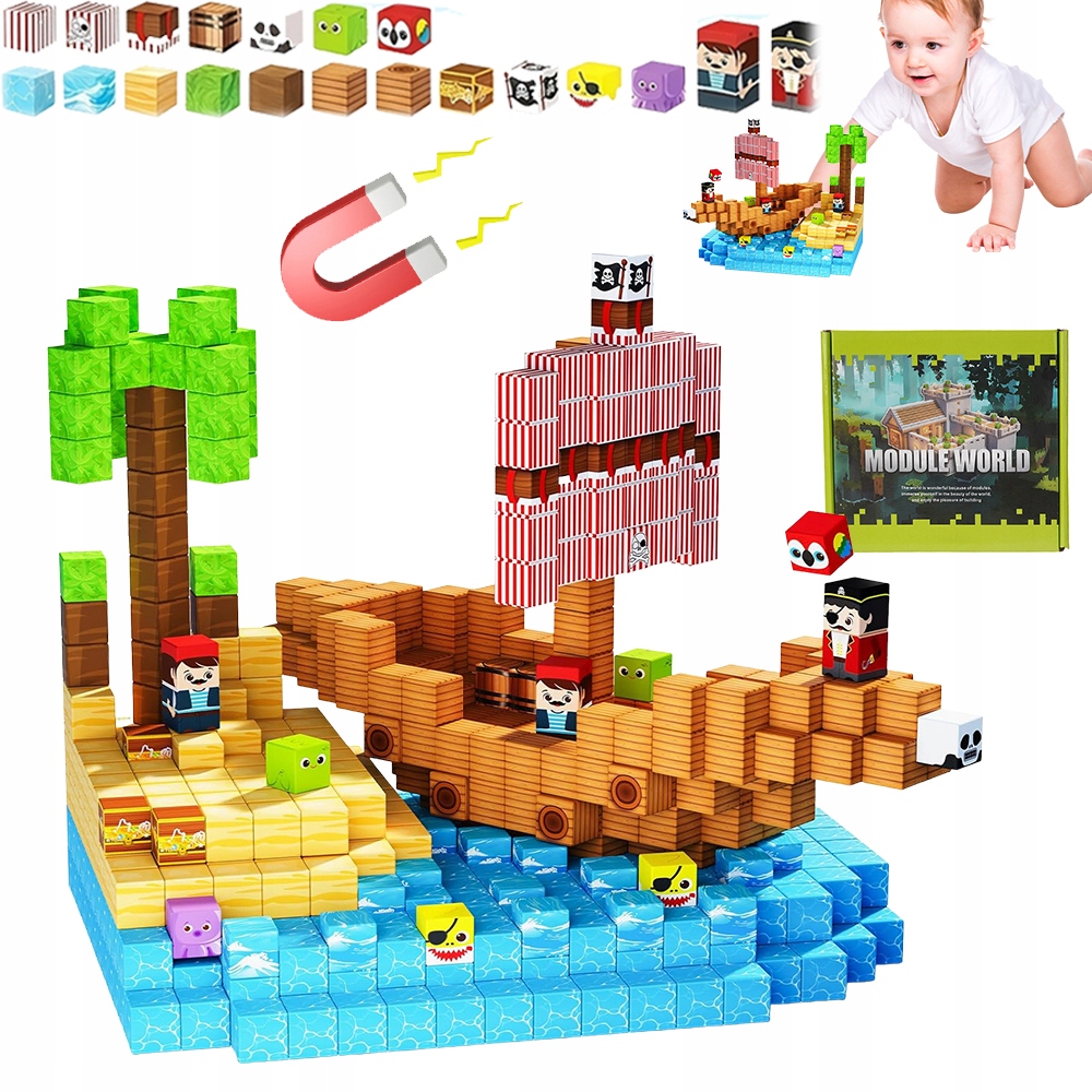 МАГНІТНІ БЛОКИ КУБИКИ БЛОКИ ПІРАТСЬКИЙ КОРАБЕЛЬ 100 БЛОКІВ ДЛЯ ДІТЕЙ