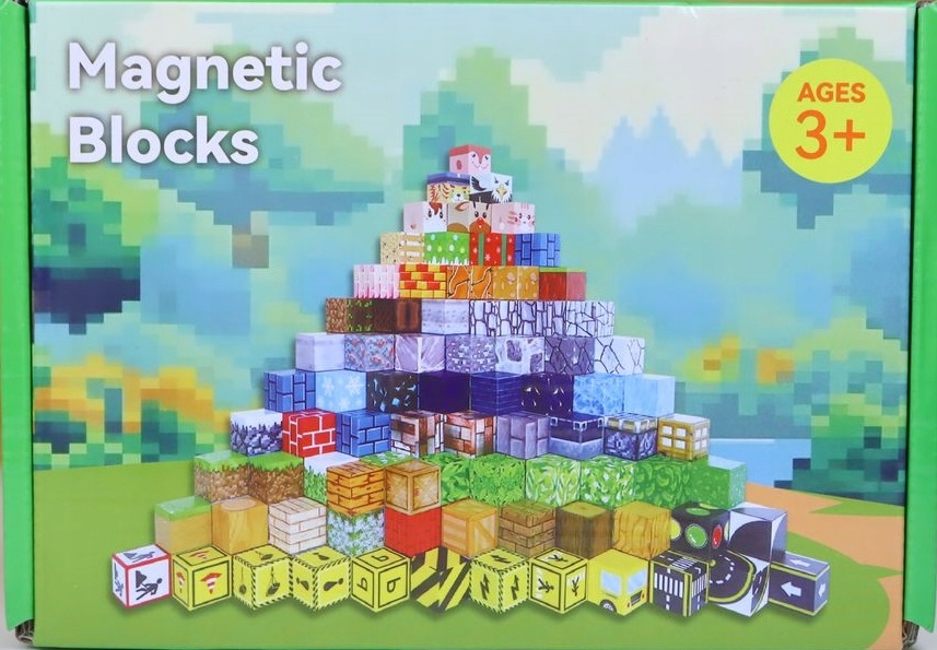 Набір містить до 100 міцних магнітних блоків у формі куба, які можна вільно комбінувати та конструювати.