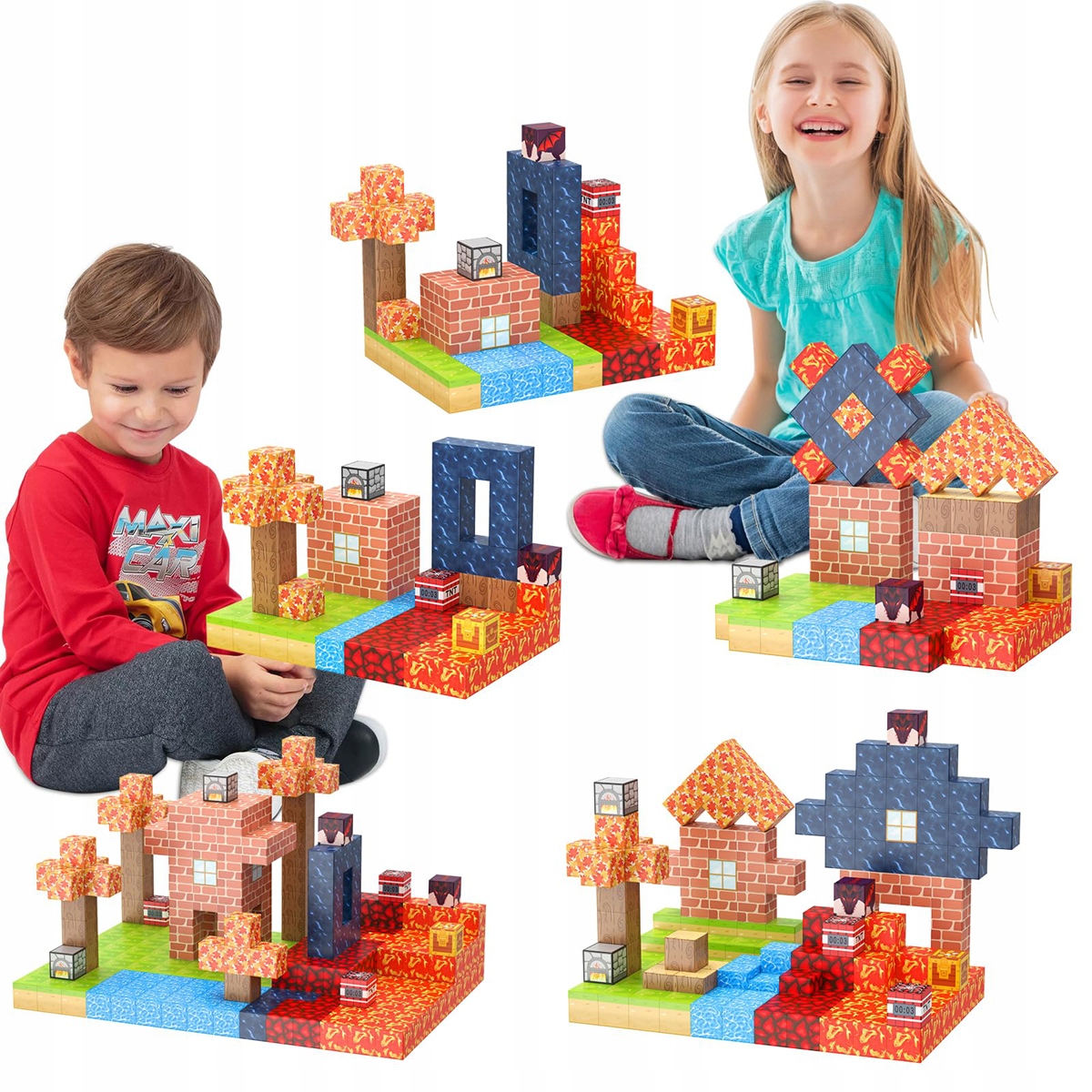 ⛺ 100 типів магнітних блоків, включаючи цегли, дерево, вікна, вода, трава та інші елементи. Możesz zbudować swój własny świat.