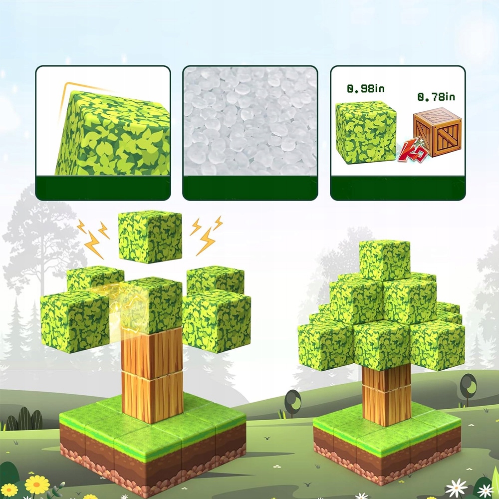 Досвід гри з магнітними іграшками завдяки цьому 1-дюймовому набору магнітів! Побудуйте лісовий замок з 8 різними типами магнітних блоків і починайте лісові пригоди з ролями та іграшками для ролей, від простих до складних конструкцій. Нехай дитяча уява божевільна в наших магнітних відкритих іграх.