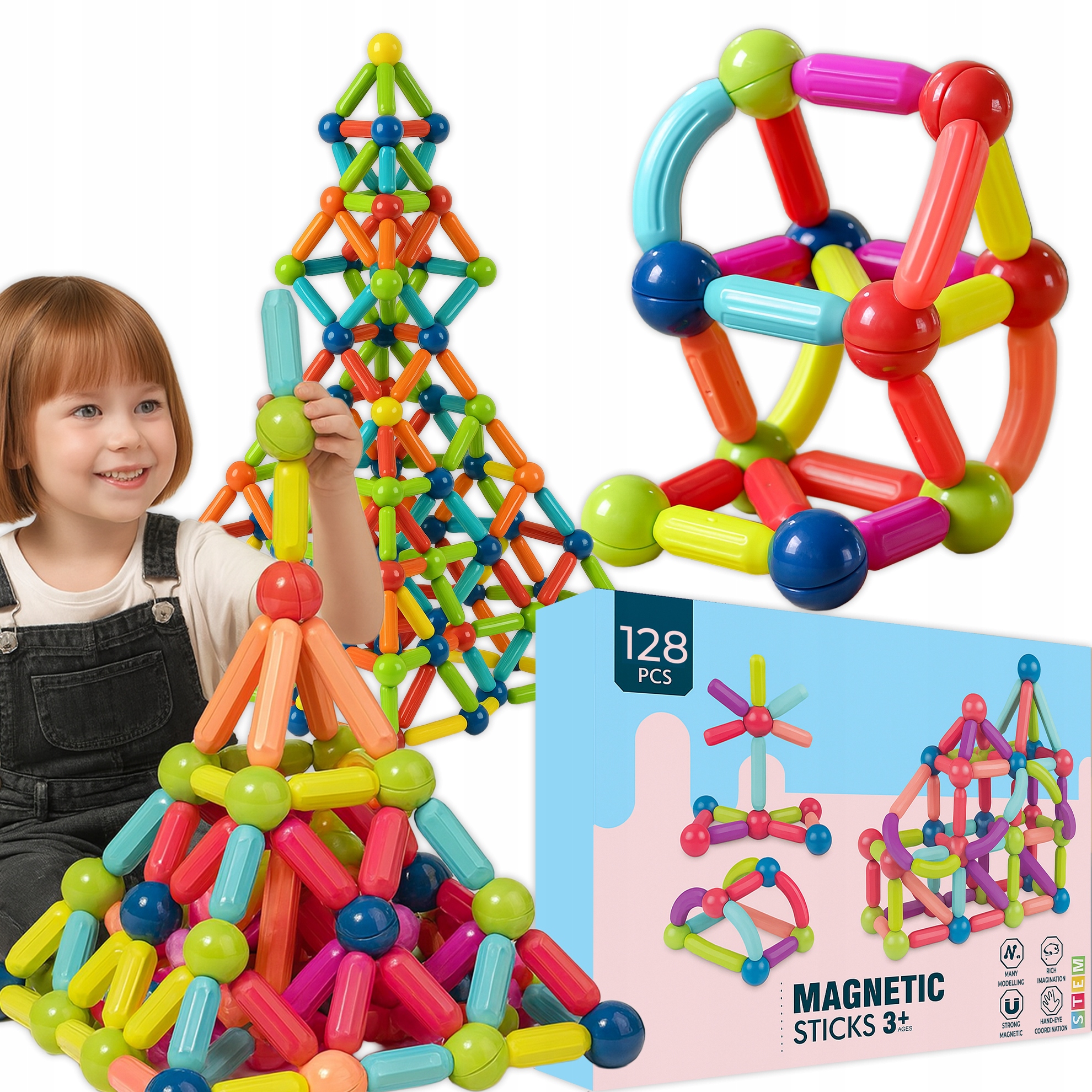 МАГНІТНІ БЛОКИ НАВЧАЛЬНІ, ТВОРЧІ, МАГНІТНІ, МАГНІТНІ ПАЛИЧКИ 128 шт.