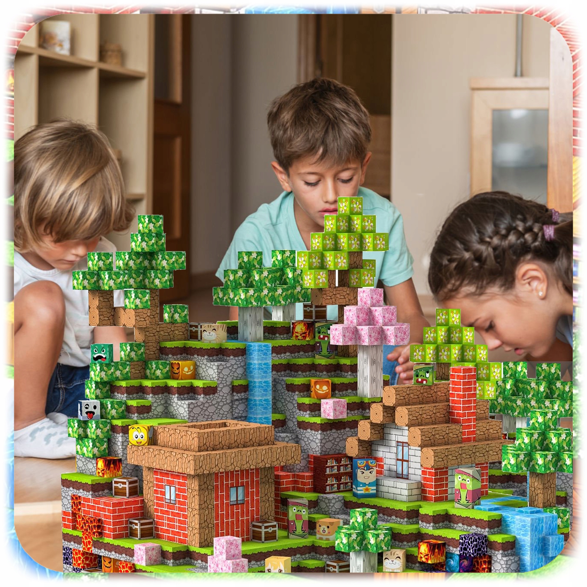 Набір, натхненний світом кубиків, дозволяє дітям будувати, експериментувати та відкривати. Кожен блок має унікальний принт - камінь, трава, лава, цегла, дерево, скло, вода, скриня, тротил та багато інших текстур.