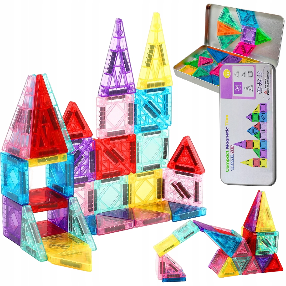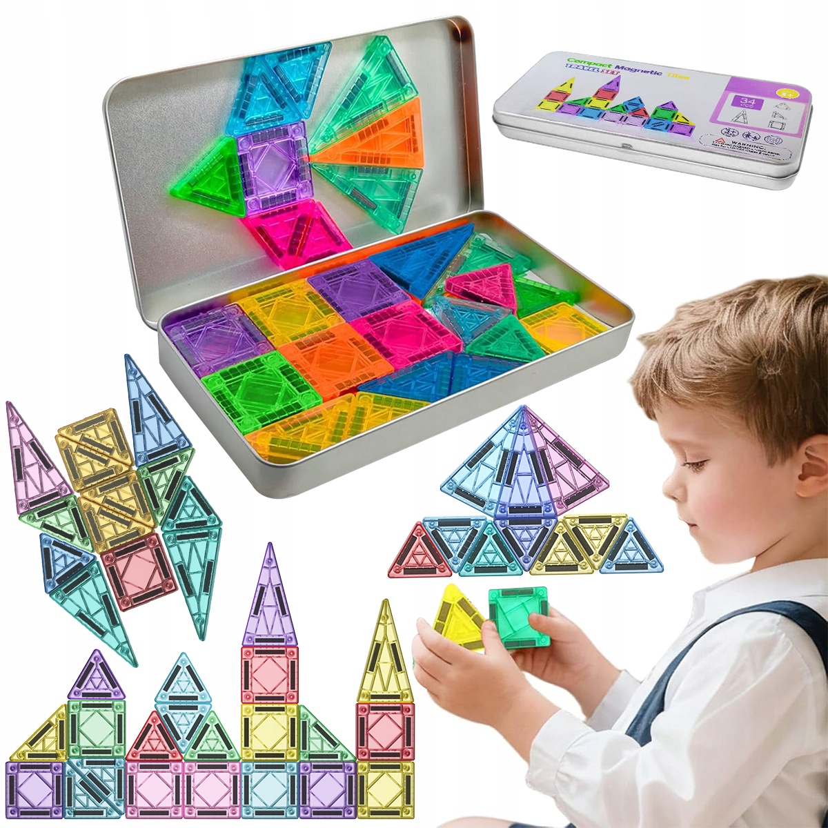🌈Мініатюрні магнітні плитки з металевою коробкою для дітей із 34 елементів, магнітні блоки STEM, сенсорна іграшка, іграшка для малюка, конструктор, мініатюрні магнітні блоки для використання в класі, подарунок для хлопчиків і дівчаток від 3 років🌈