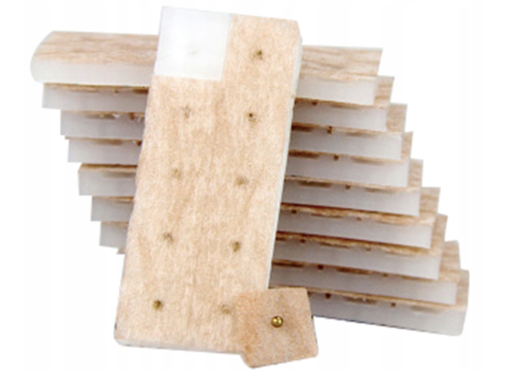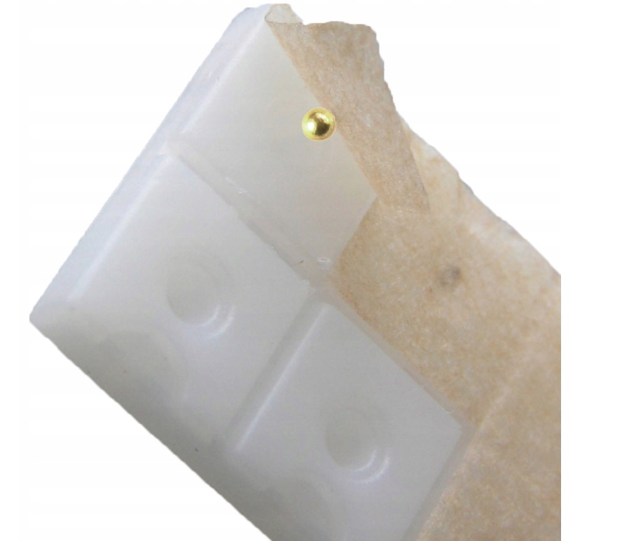 Щоб робота з магнітними кульками була швидкою та легкою, кульки попередньо наклеєні на пластирі хірургічної стрічки з відповідною поляризацією. Це дозволяє зняти їх і відразу помістити на потрібну точку акупунктури. Скибочки коричневі.