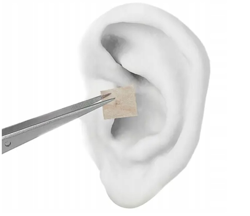 Магнітні кульки на пластирах, що використовуються в аурикулотерапії, потужністю 800 Гаус.