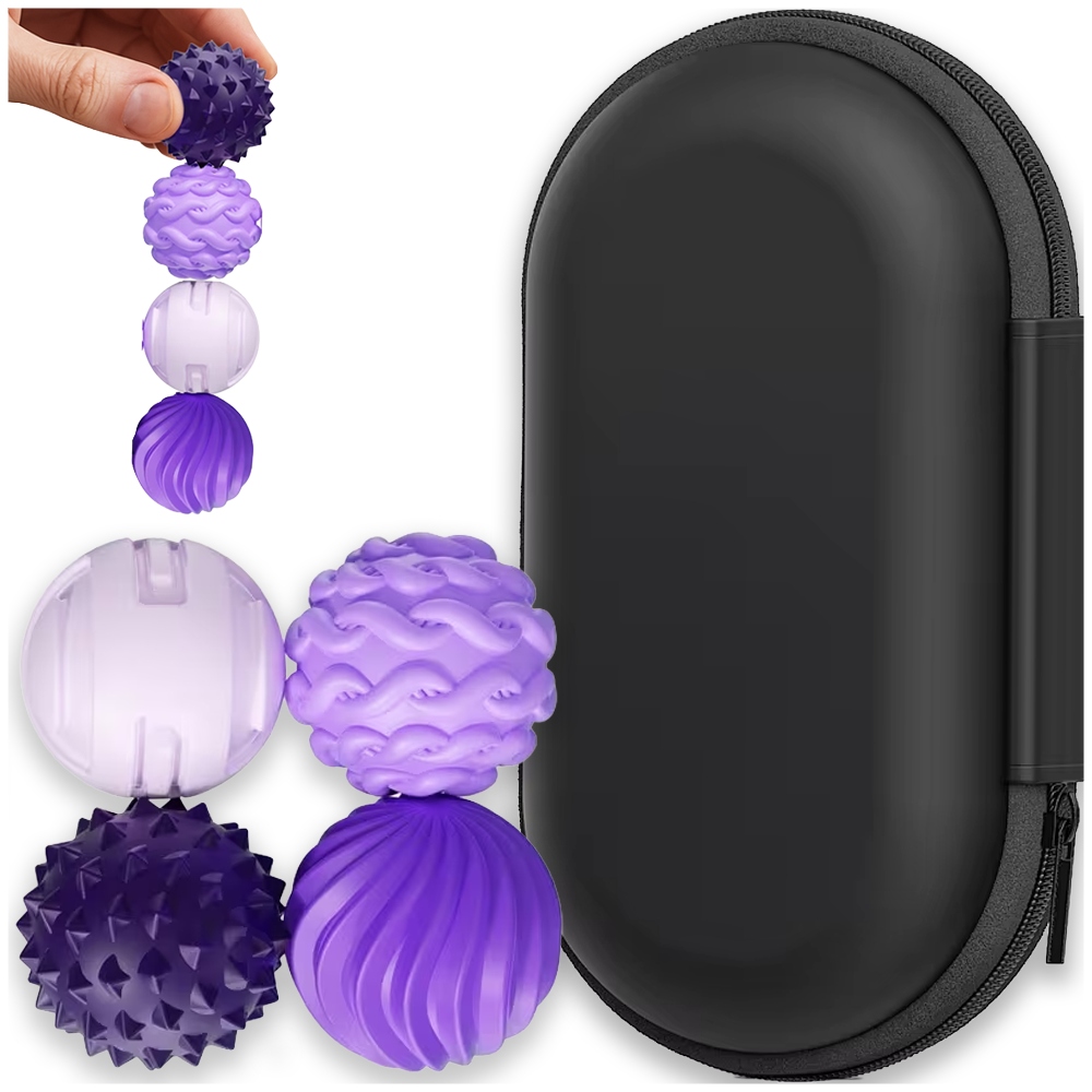• 4 магнітні сенсорні кульки з різними текстурами