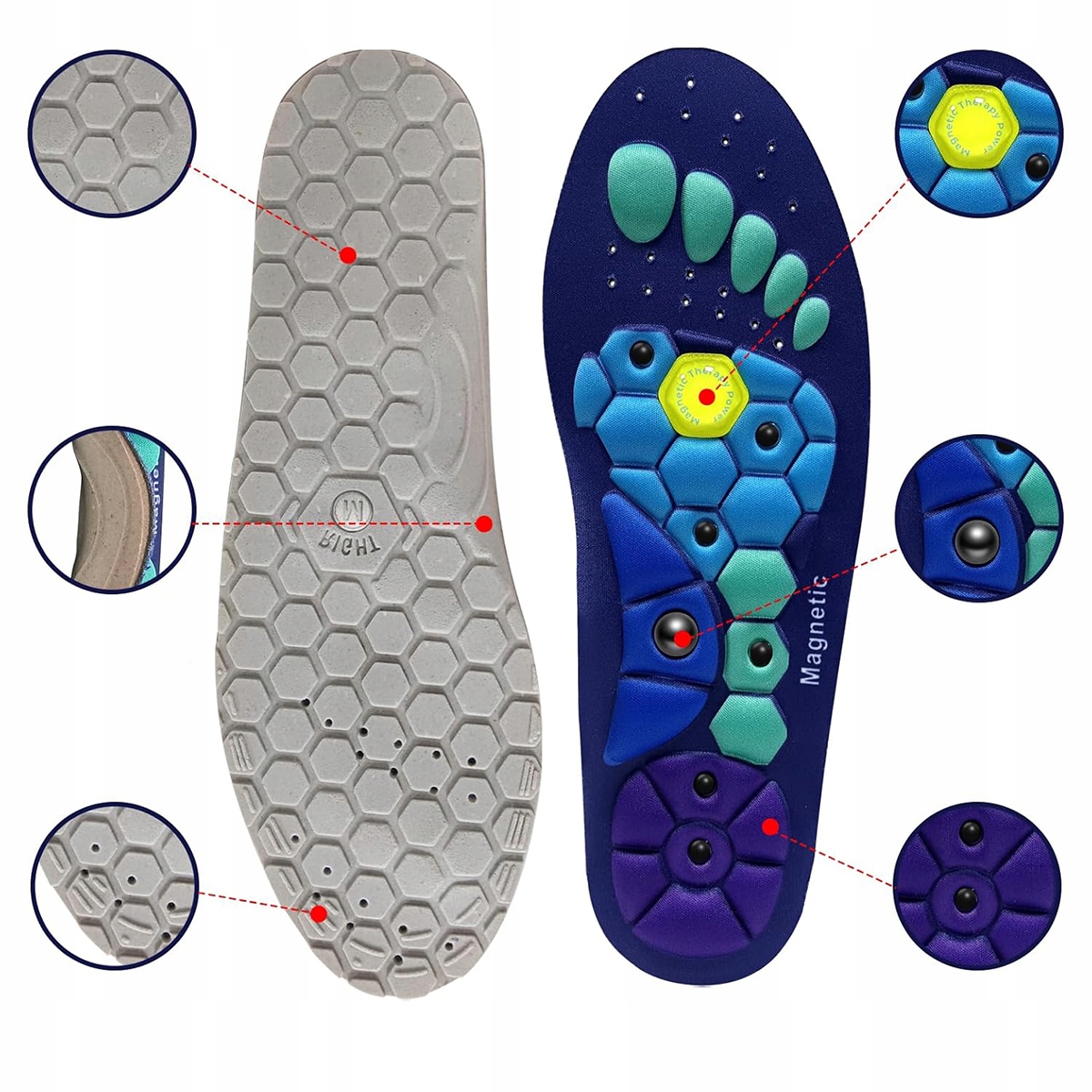 ➡️7 точок магнітного масажу: вбудовані магніти та гелеві точки масажу дозволяють застосовувати м’який тиск до основних рефлексотерапевтичних зон і точок акупунктури на підошвах ніг. Ці типи ортопедичних взуттєвих устілок для чоловіків не тільки покращують кровообіг, але й допомагають позбутися нервозності та безсоння, а також залишають вас розслабленими протягом дня.