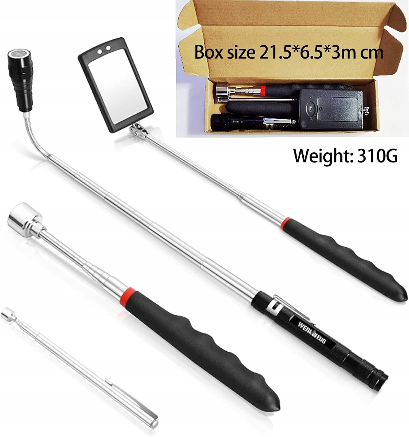 Проста робота не потрібна, будь -які додаткові інструменти можуть бути розширені вручну, а м'які ручки на обох інструментах забезпечують комфортне та ергономічне зчеплення. Широкий діапазон використання телескопічних магнітних перетворювачів підходить для пошуку металевих деталей, таких як металеві гвинтові гайки, гвинти тощо. Отримайте 1 шматок магнітного інструменту для підйому 07 кг 1 Магнітний шматок Інструменти для підйому 36 кг 1 круглої оглядової дзеркала та 1 квадратного огляду дзеркала загалом 4 ПК. легкий підняття або контроль. Регульована ручка та дзеркальний телескопічний тримач та регульоване обертання з 360 градусами. Інструмент підйому 36 кг може поширюватися і ховатися з 19 см до 785 см, а 07 кг - 45 - 495 см. Дзеркала круглих оглядів можуть вислизати та ховатися від 944 до 74 см, а дзеркала квадратних оглядів мають від 28 см до 87 см, що регулюється оборот на 360 градусів.