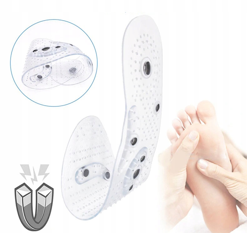 Використання магнітних вставок для взуття включає, серед іншого: знеболюючий, заспокійливий, схуднення ефект, підтримуючи кровообіг і регенерацію організму. Вони запобігають і знімають біль у м'язах, спині, гомілках і стопах.