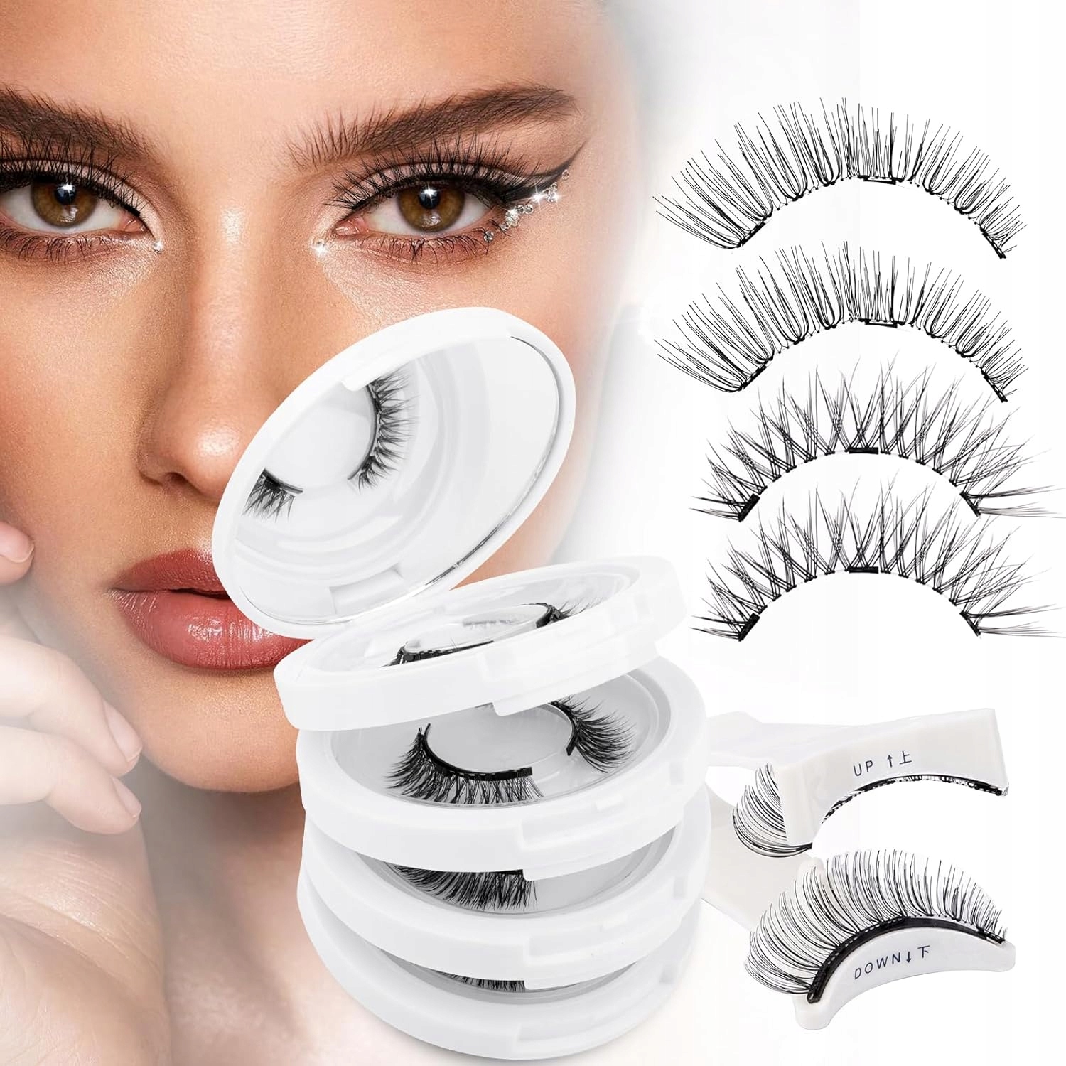 Магнітні вії не потребують клею, легко наносяться та знімаються та не викликають подразнення очей, що робить їх безпечними для людей із чутливими очима.