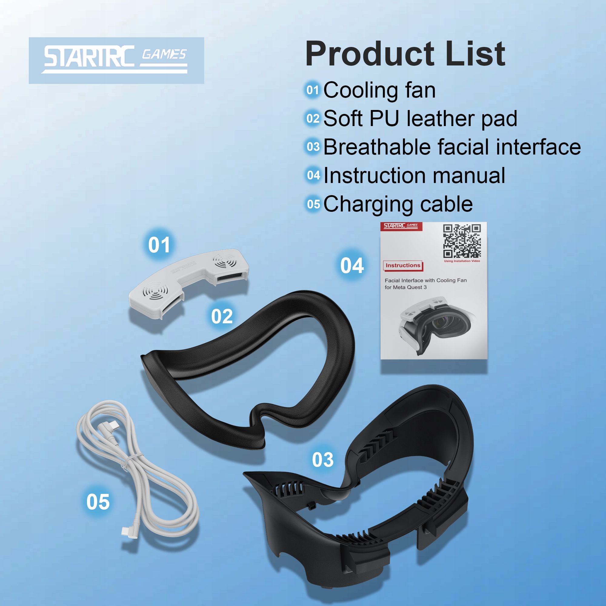 МАГНІТНИЙ 3-ШВИДКІСНИЙ ВЕНТИЛЯТОР ОХОЛОДЖЕННЯ ДЛЯ META QUEST 3 ШВИДКИЙ ЗНЯТТЯ ЛИЦЕВОЇ НАКЛАДКИ