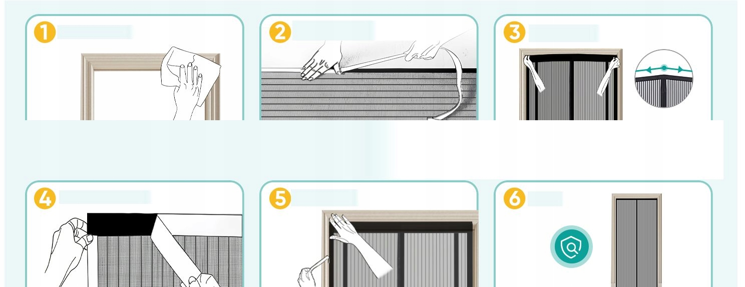 Невелика наконечник для складання: Прикріпіть середню верхню частину сітки комарів приблизно на 1-2 см вище, ніж у верхній та правій куточках. Завдяки цьому магніти простіше поєднувати, а комарна мережа закривається більш ефективно.