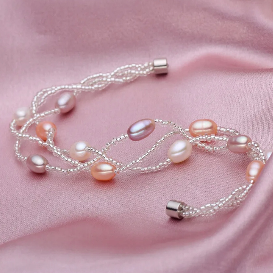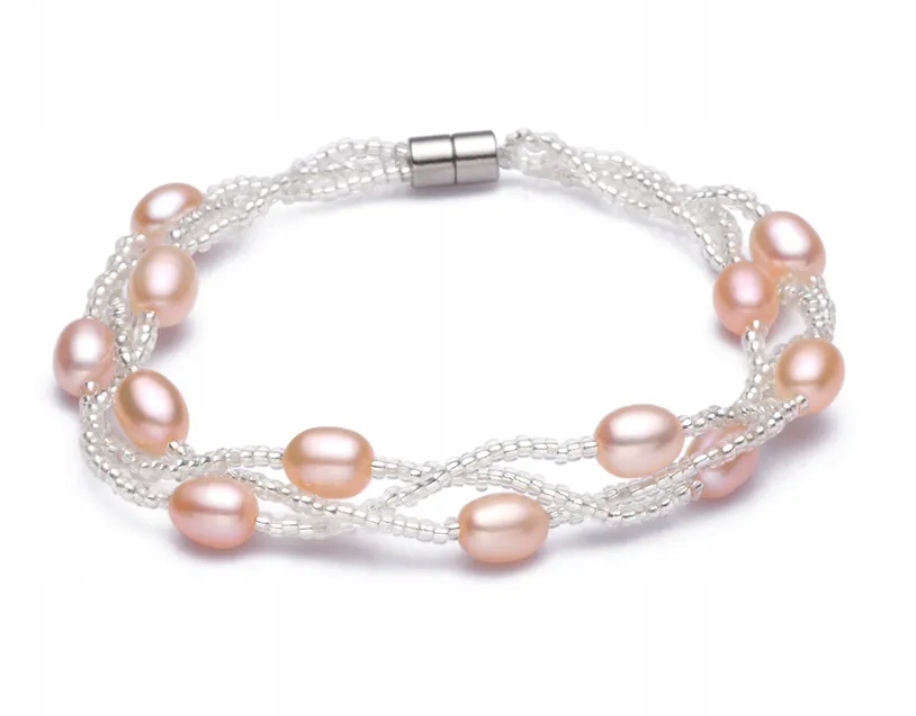 МАГНІТНИЙ БРАСЛЕТ СВІТЛО-РОЖЕВИЙ ПЕРЛИ БУСИНИ